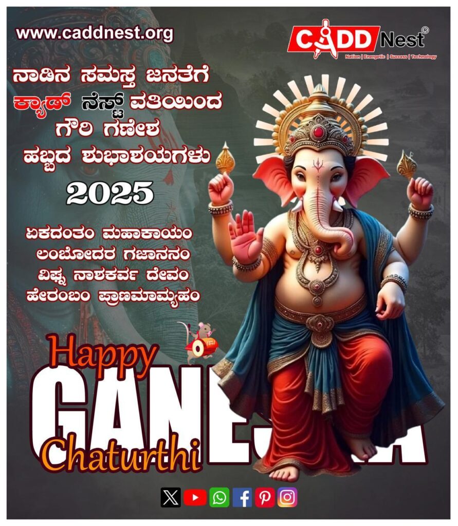 “ಕ್ಯಾಡ್ನೆಸ್ಟ್ನಿಂದ ಎಲ್ಲಾ ವಿದ್ಯಾರ್ಥಿಗಳಿಗೆ ಗಣೇಶ ಚತುರ್ಥಿಯ ಹಾರ್ದಿಕ ಶುಭಾಶಯಗಳು! ಶ್ರೀ ಗಣೇಶನ ಆಶೀರ್ವಾದದಿಂದ ನಿಮ್ಮ ಶೈಕ್ಷಣಿಕ ಮತ್ತು ವೃತ್ತಿಪರ ಜೀವನದಲ್ಲಿ ಎಲ್ಲಾ ತೊಡಕುಗಳು ದೂರವಾಗಲಿ. ಜ್ಞಾನ, ಧೈರ್ಯ, ಮತ್ತು ಏಕಾಗ್ರತೆಯೊಂದಿಗೆ ನಿಮ್ಮ ಗುರಿಗಳನ್ನು ಸಾಧಿಸಲು ಈ ಹಬ್ಬವು ನಿಮಗೆ ಸ್ಪೂರ್ತಿಯಾಗಲಿ. ಕ್ಯಾಡ್ನೆಸ್ಟ್ನಲ್ಲಿ ಬಹುಬೇಡಿಕೆಯ ಕೋರ್ಸ್ಗಳನ್ನು ಕಲಿಯಲು ಬಯಸುವ ವಿದ್ಯಾರ್ಥಿಗಳಿಗೆ ಕೋರ್ಸ್ಗಳ ಶುಲ್ಕಗಳಲ್ಲಿ ಭರ್ಜರಿ ವಿನಾಯಿತಿ ನೀಡಲಾಗುತ್ತಿದೆ. ಹೆಚ್ಚಿನ ಮಾಹಿತಿಗೆ ನೀವು ಬಸವನಗುಡಿ ಮತ್ತು ರಾಜಾಜಿನಗರದ ಕ್ಯಾಡ್ನೆಸ್ಟ್ ಶಾಖೆಗಳಿಗೆ ಭೇಟಿ ನೀಡಬಹುದು”– ಪ್ರಕಾಶ್ ಗೌಡ ಎಚ್ಎಂ, ವ್ಯವಸ್ಥಾಪಕ ನಿರ್ದೇಶಕರು, ಕ್ಯಾಡ್ನೆಸ್ಟ್